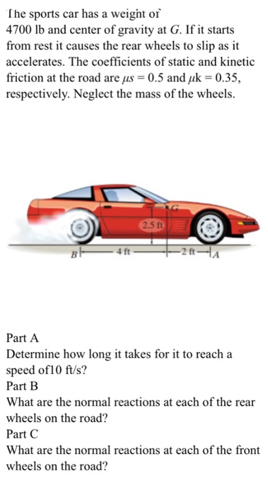 Solved: The Sports Car Has A Weight Of 4700 Lb And Center ...